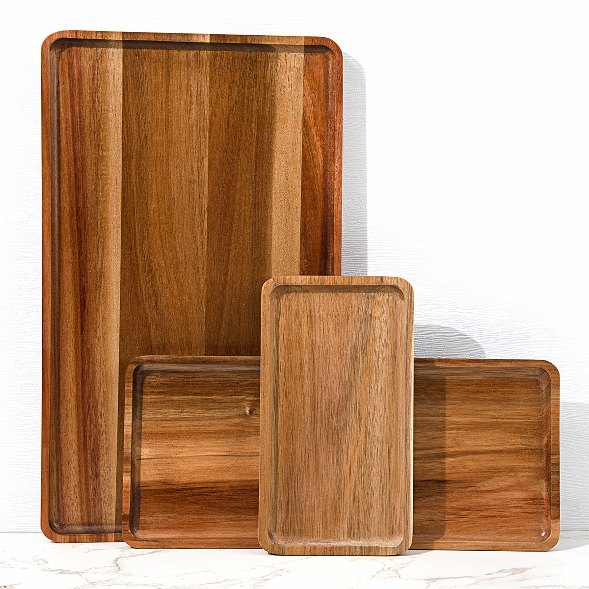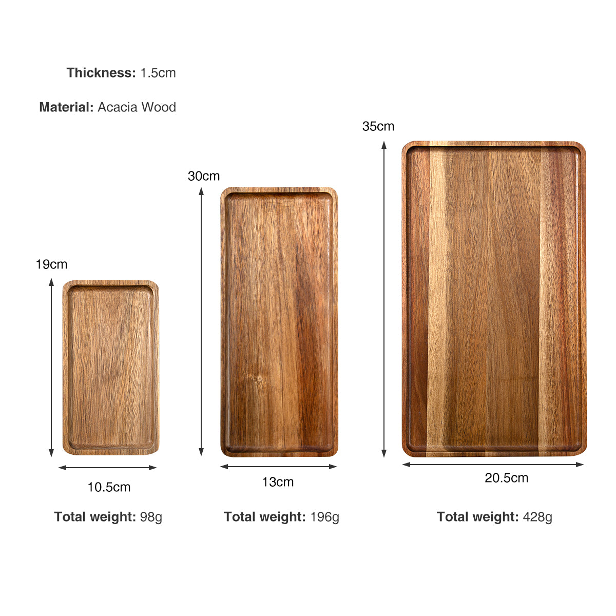 Premium Quality: Crafted with care and precision, each tray is unique, showcasing the natural beauty of Acacia wood. The polished finish enhances the wood's grain and texture, adding an extra touch of sophistication to your table setting.