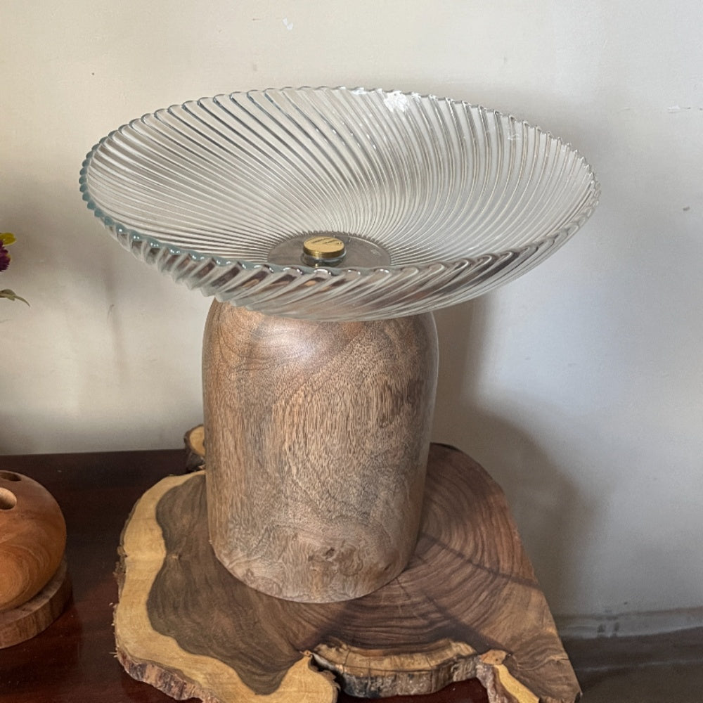 • Material: Glass Bowl, Mango Wood Base