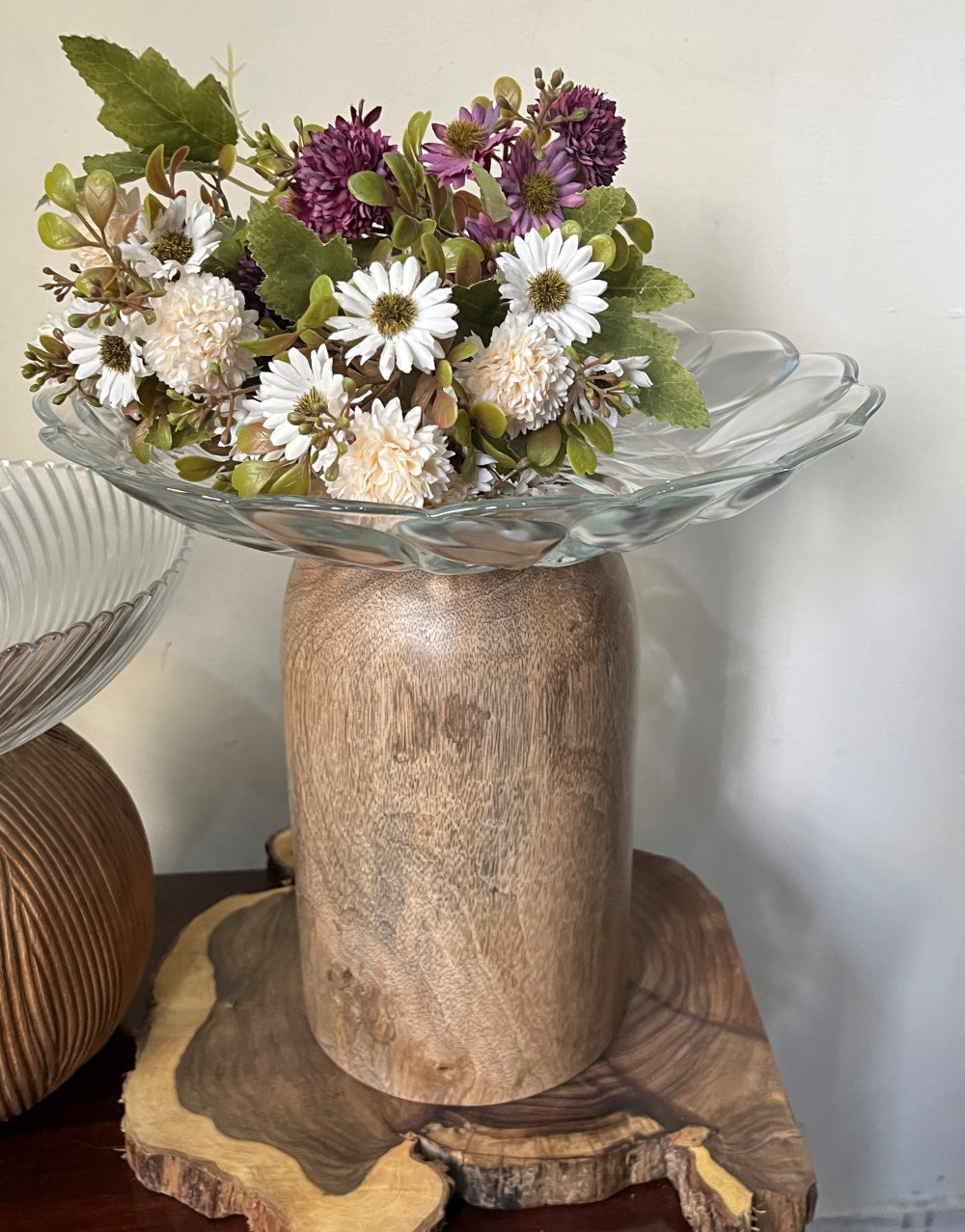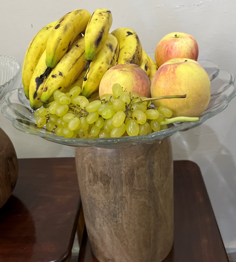 • Elegant Design: The combination of a clear glass bowl and a rich Mango Wood base creates a sophisticated look that enhances any dining table or display setting.
