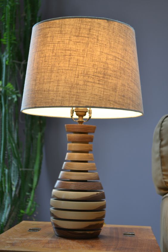 • Material: Solid Wood Base with Groove Design, Fabric Shade