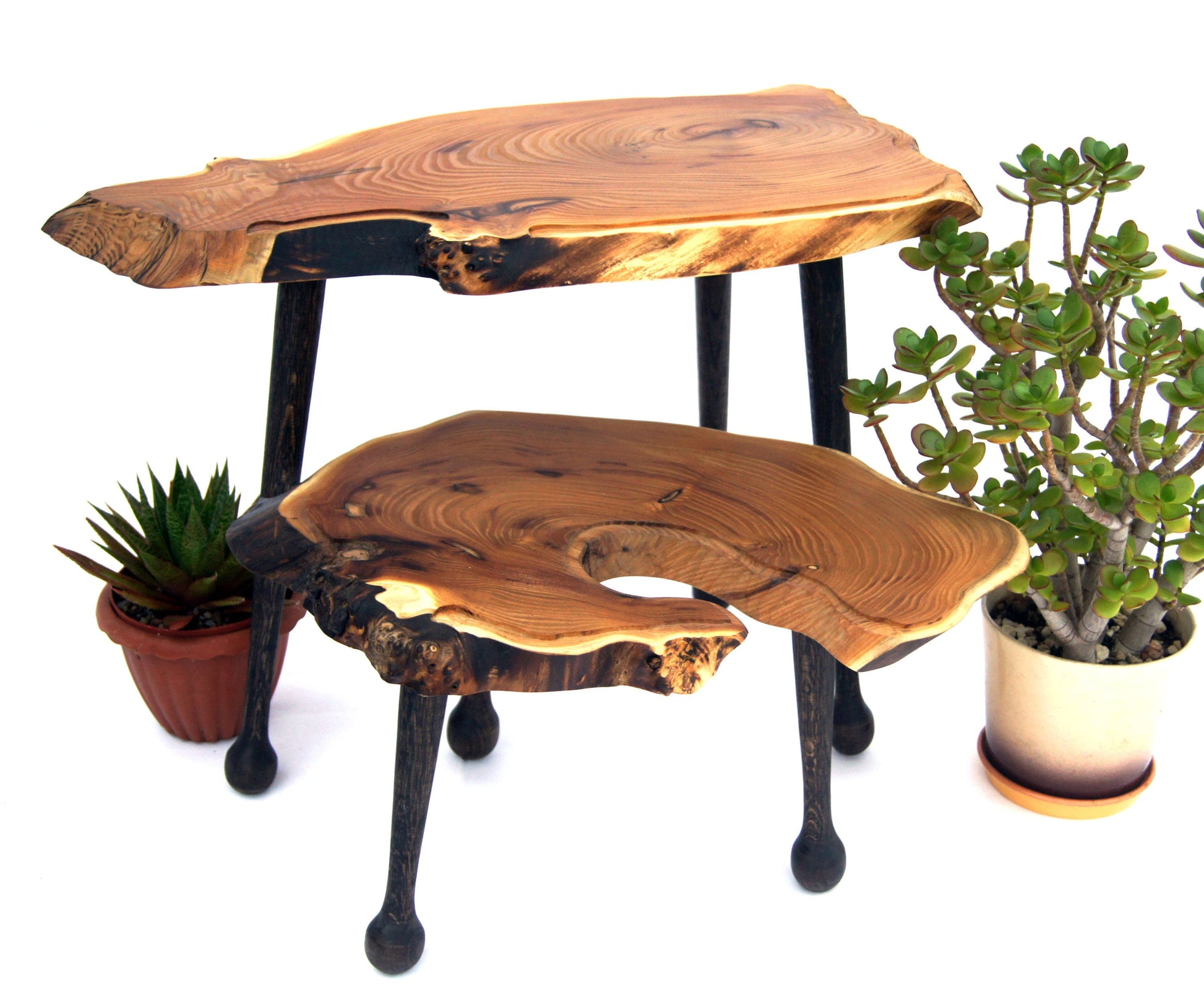 Perfect as side tables, plant stands, coffee nooks, or decorative accents, this set works wonderfully in both modern and farmhouse-inspired interiors. Whether placed together as a nesting trio or used individually around your home, these raw wood tables add warmth, character, and artisan craftsmanship to any corner.